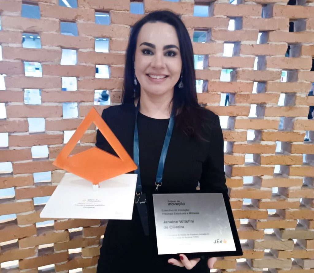A coordenadora do NPI, foi eleita a melhor Executiva de Inovação da edição 2023. Para Janaíne Voltolini “participar desta edição do Prêmio de Inovação – Judiciário Exponencial, foi uma honra e uma grande oportunidade de interagir com outros profissionais do ecossistema de inovação do judiciário brasileiro.”