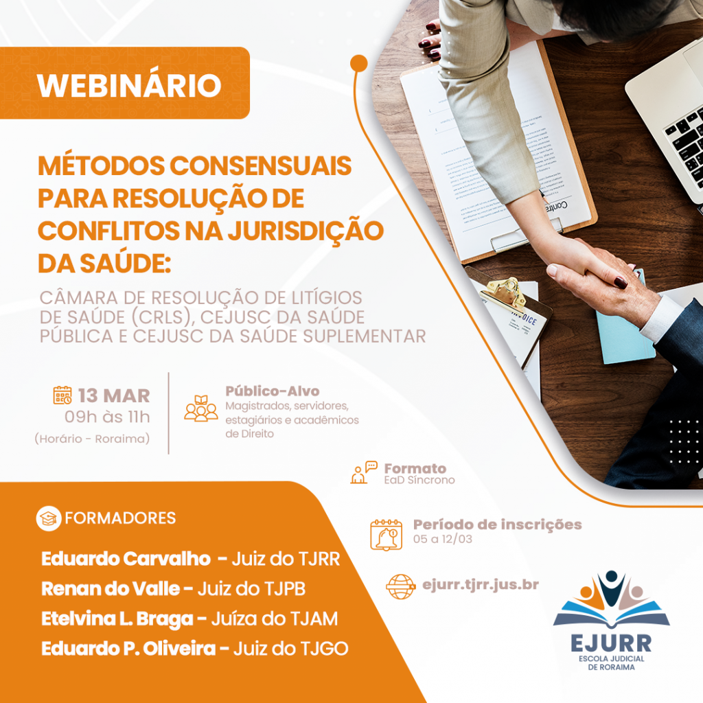 WEBINÁRIO: MÉTODOS CONSENSUAIS PARA RESOLUÇÃO DE CONFLITOS NA JURISDIÇÃO DA SAÚDE